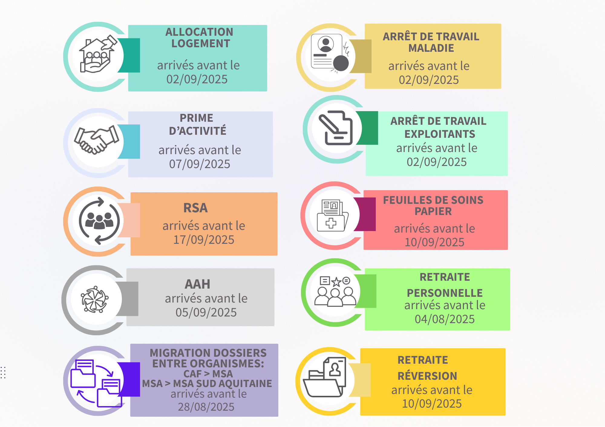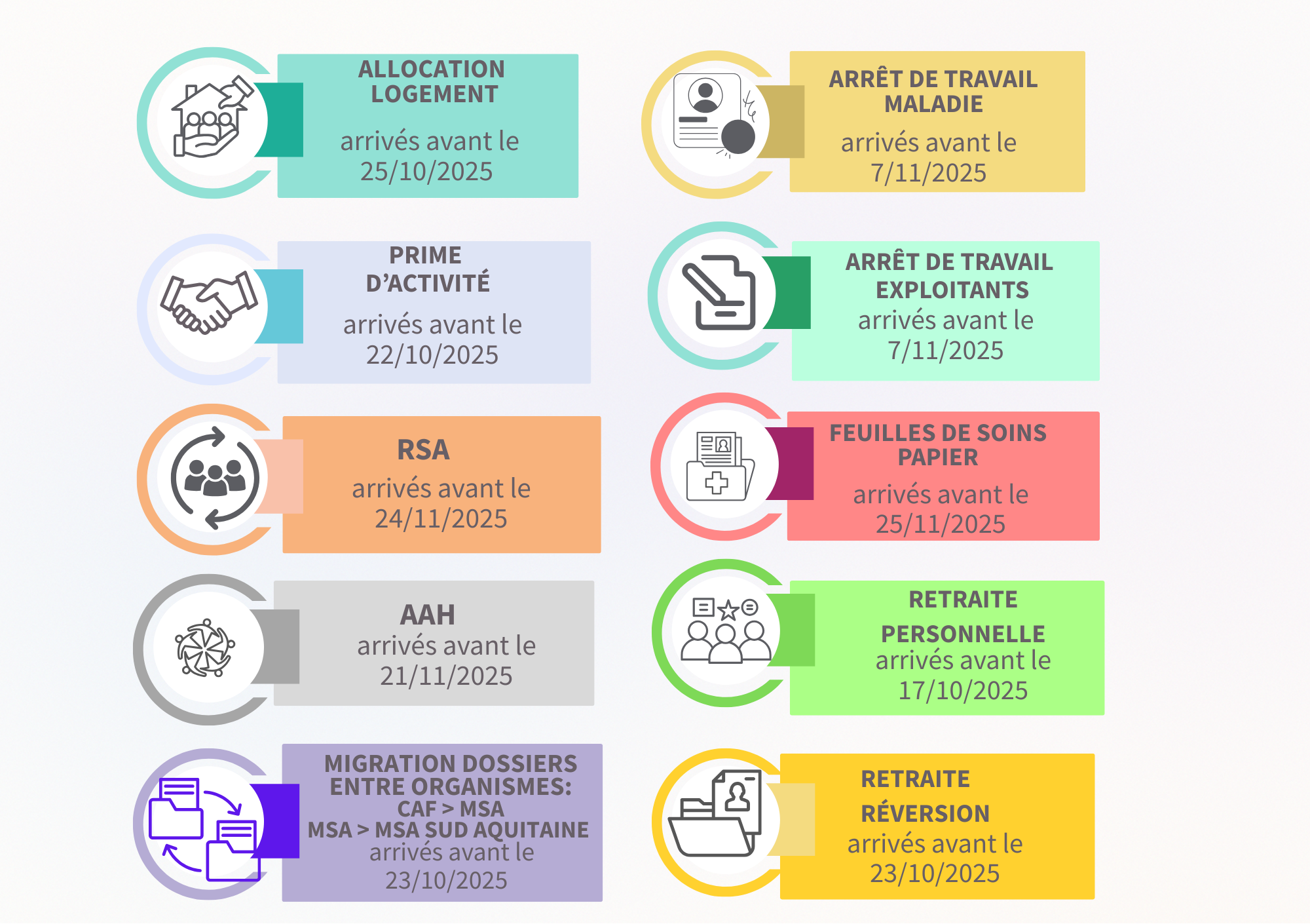 La MSA instruit actuellement les dossiers arrivés avant le (date indiquée ci-dessous).
